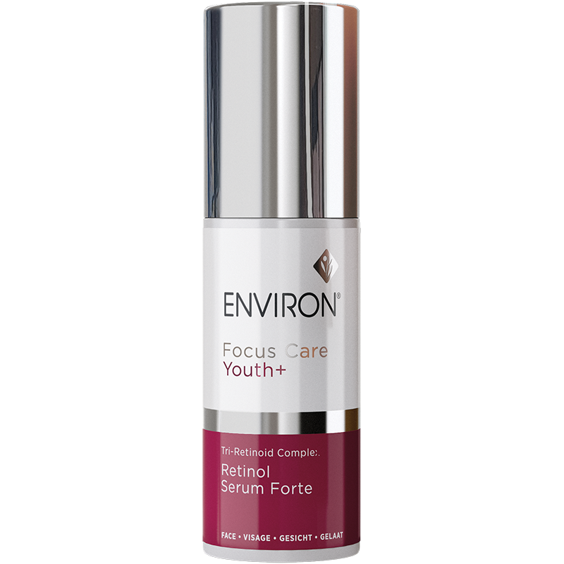 Retinol Serum Forte is a step-up retinol booster to be introduced when skin is comfortable with Environ’s Retinol Serum. This serum intensifies the benefits of vitamin A micronutrition for the skin with additional phyto-retinol boosters; Revinage® and NovoRetin™. These specialised ingredients assist to further promote overall skin longevity and youthfulness. Tolerance Tested. Swiss Vitamin Institute Certified.